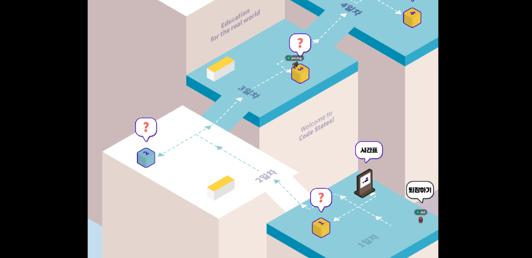 코스를 시작하면 이렇게 게더타운이라는 곳에 입장하게 된다.